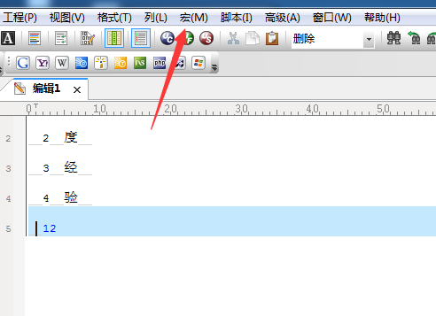 2、进行点击UltraEdit的菜单中的 进行点击菜单中的宏的选项。