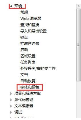 在新弹出的界面左侧,选择“环境”下的“字体和颜色”。