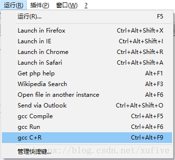 将该命令命名为 gcc C+R,快捷键定义为Ctr + Alt + F9