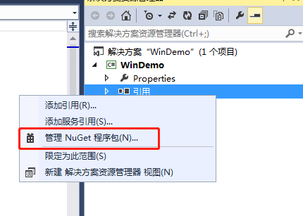 3、右键【引用】,选【Nuget】