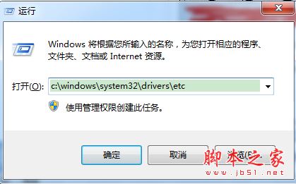 7.在运行中输入c:\windows\system32\drivers\etc,点确定
