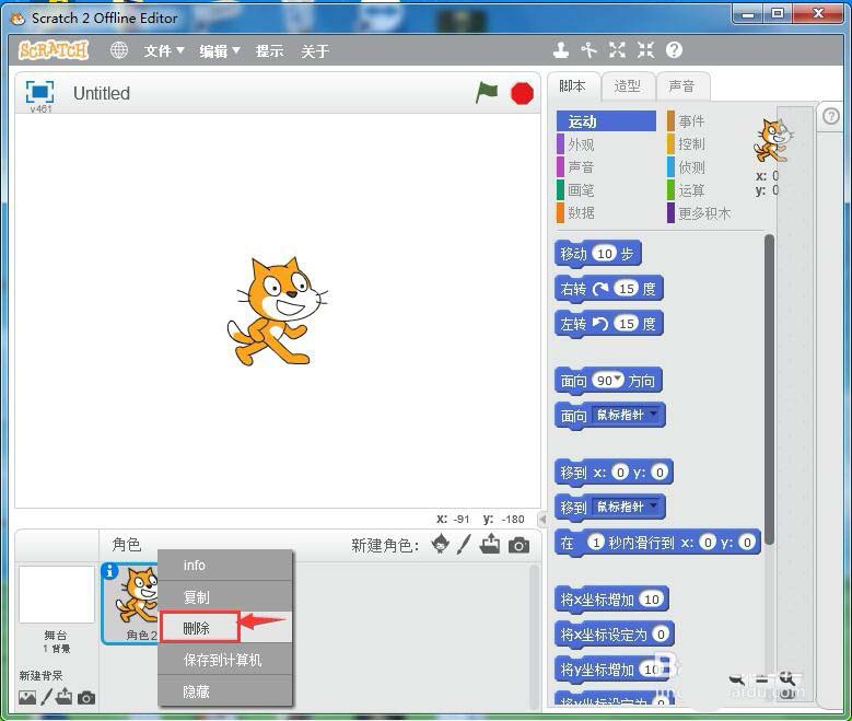 2、在小猫上按右键,点击删除,将小猫删除掉;