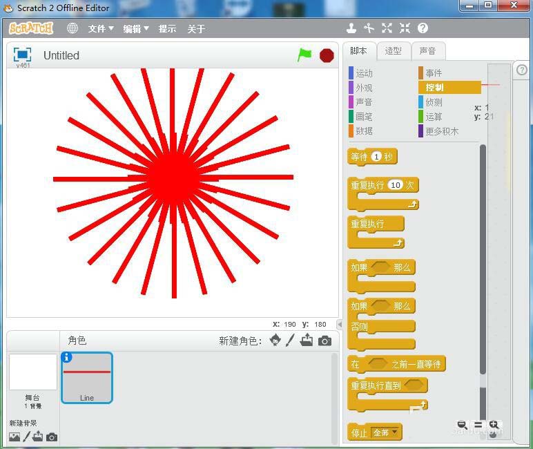scratch中想要创建一个直线角色,并让它旋转、克隆、重复执行,从而创建出直线旋转动画,该怎么实现呢?下面我们就来看看详细的教程。
