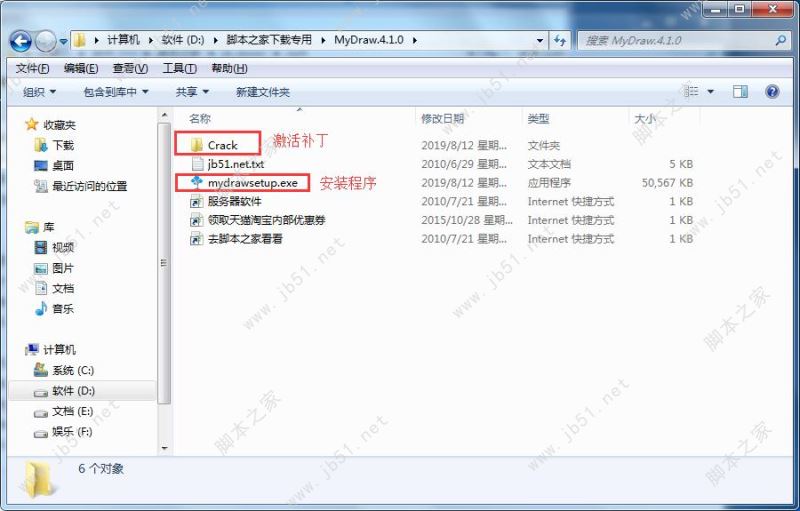 1.在脚本之家下载解压完成后,大家将获得激活补丁和软件安装程序等文件,如图