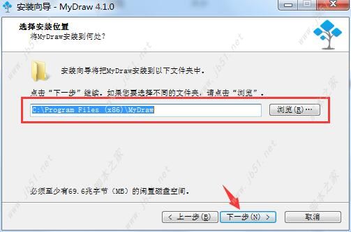 4.选择软件安装地址,默认地址:C:\Program Files (x86)\MyDraw。如图