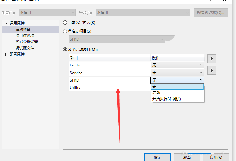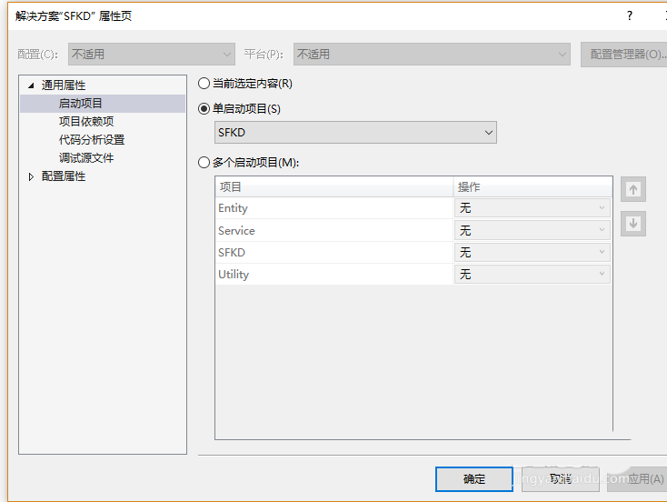 7、最后你也可以右键单击解决方案选择设置启动项目直接打开设置界面,如下图所示。