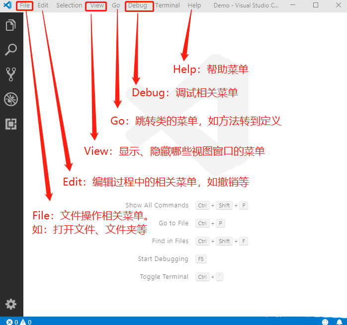 2、首先看顶部的菜单栏,File是对文件操作的菜单,如打开文件、文件夹等。