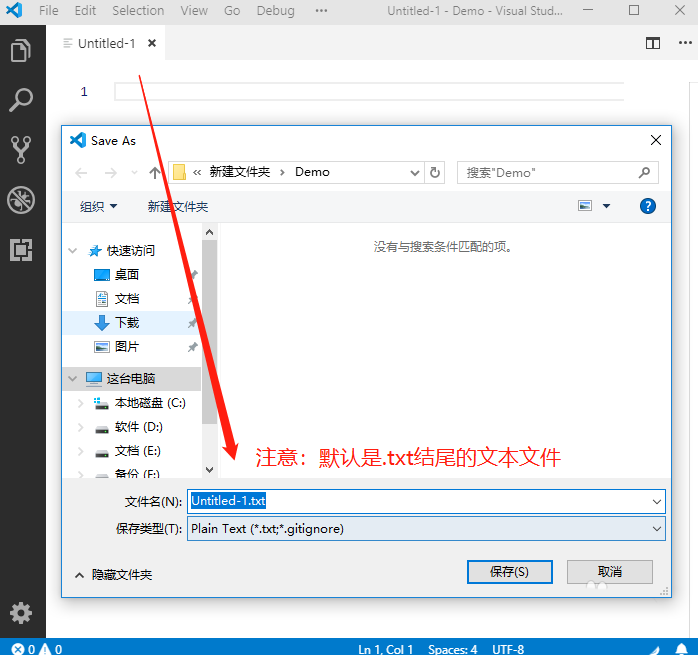 6、这个时候,可以使用【Ctrl + S】组合键,或者,点击【File】菜单下面的【Save】选项,保存文件到电脑的磁盘。在弹出的保存到磁盘位置的界面中,默认的文件类型是txt文本文件,注意要修改为.html结尾的文件,才是html网页文件
