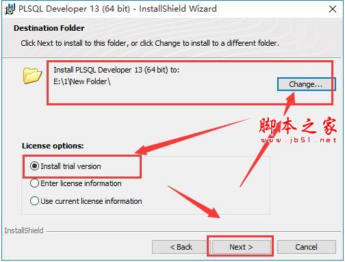 4、更改软件安装目录,下面是版本选择,第一项是安装试用版,第二项是输入授权文件,我们默认安装试用版,点击“next”