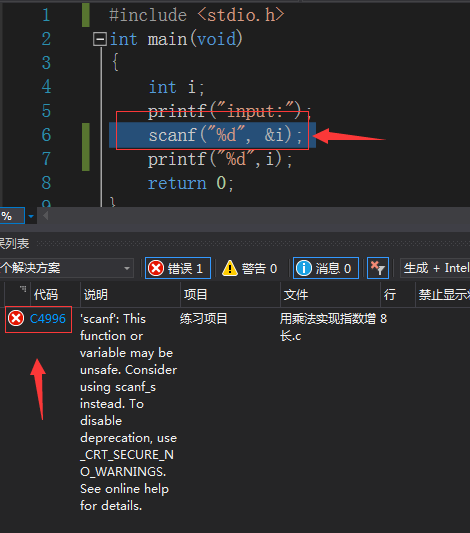 Visual Studio简称VS。VS是一个基本完整的开发工具集,包含了许多与编程有关的工具。如果你使用过VC6.0,那么对基本输入函数scanf()一定不会陌生。但是在VS的环境下scanf直接使用会在生成解决方案时产生C4996错误,该怎么解决这个问题呢?今天我们就来介绍三种解决方案,很简单,请看下文详细介绍。