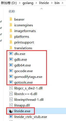 解压后为liteide文件夹:
