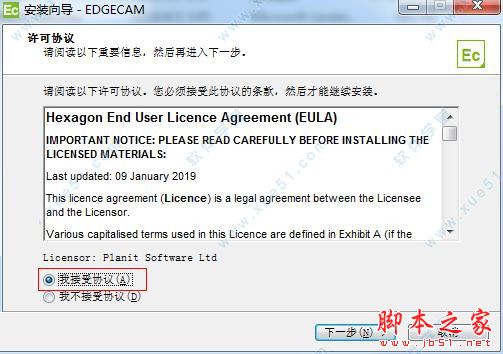 2、然后在EDGECAM文件夹下找到安装主程序“setup.exe”并双击运行,来到用户许可协议界面,选择【我接受协议】。