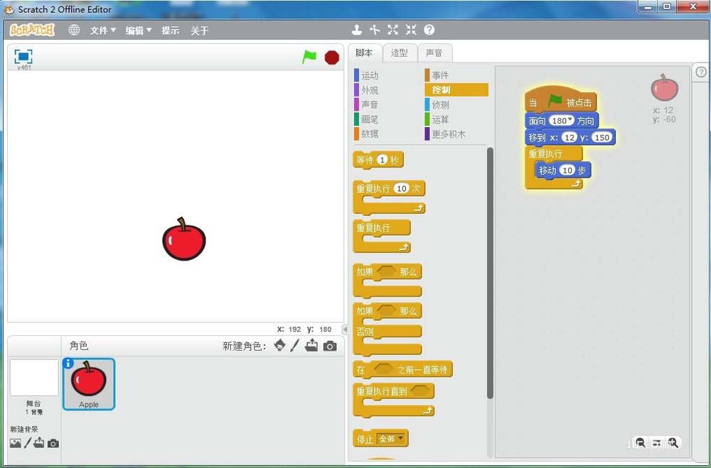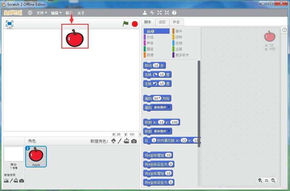 以上就是scratch制作苹果落地的动画效果的教程,希望大家喜欢,请继续关注脚本之家。
