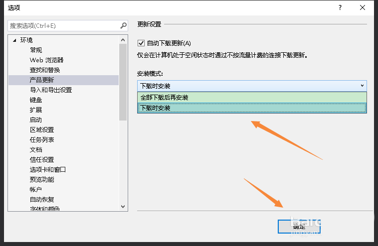 以上就是vs2019设置自动更新的安装模式的教程,希望大家喜欢,请继续关注脚本之家。