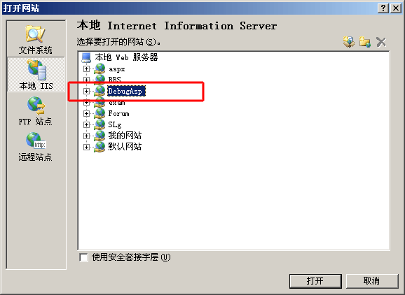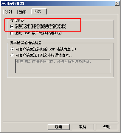 1,在 IIS 里设置里“启用 ASP 服务器端脚本调试”,如图: