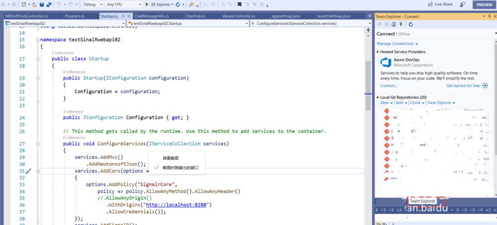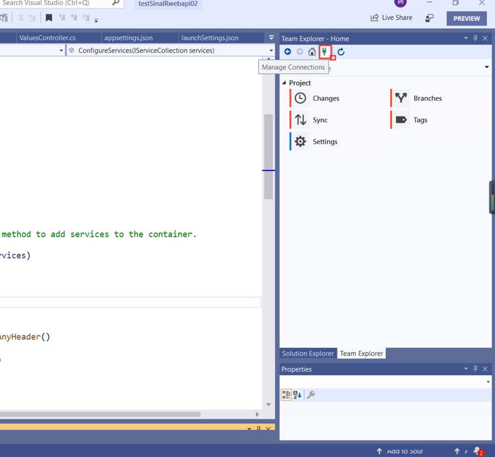 1、新建或者打开一个vs2019的项目,我在这里打开了我的一个项目。打开后右侧的右下角有两个TAB项,其中一个为Team Explorer,在连接VSTS会用到这个。