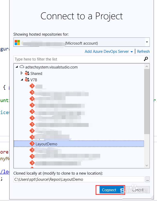 4、然后点击connect下边的Manages Connections,再点击connect a project后会弹出一个连接框。