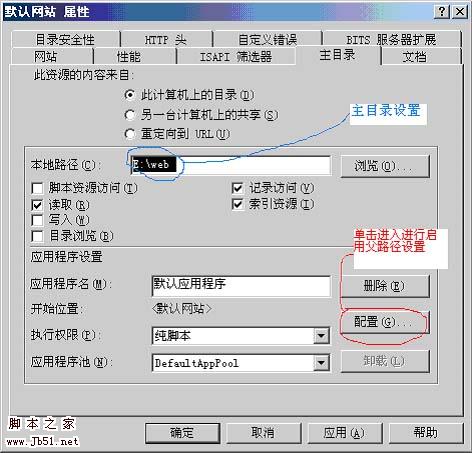 IIS默认的主页文档只有default.htm和default.asp,根据需要,利用“添加”和“删除”按钮,可为站点设置所能解析的主页文档。