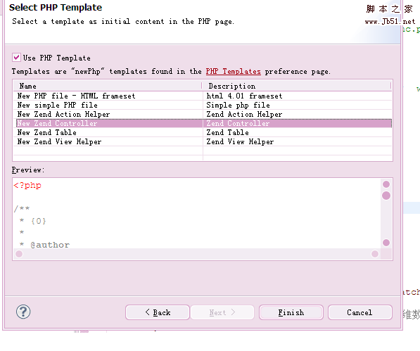 那么,怎么使用它呢?在使用New->php file新建文件的时候,在向导的下一步使用你修改过的New simple PHP file或者新建的模板名称