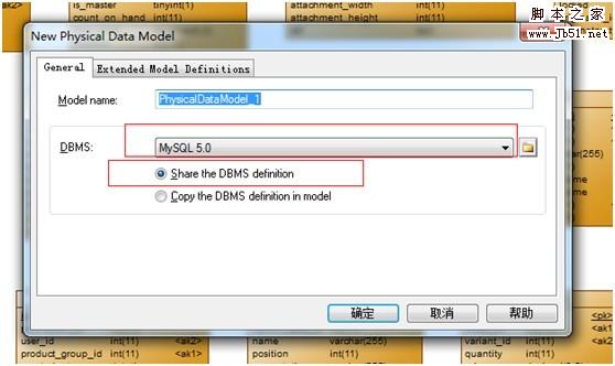 图一,选择“share the DBMS definition”然后点击确定。注意,数据库也要选择和自己的数据库对应的,我的数据库是mysql5.0的,所有我也选择了mysql5.0。