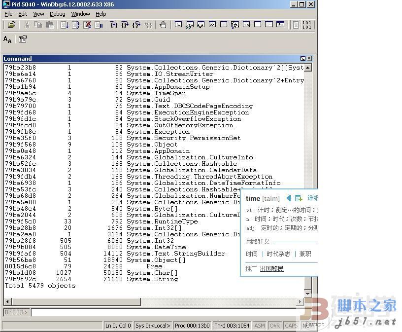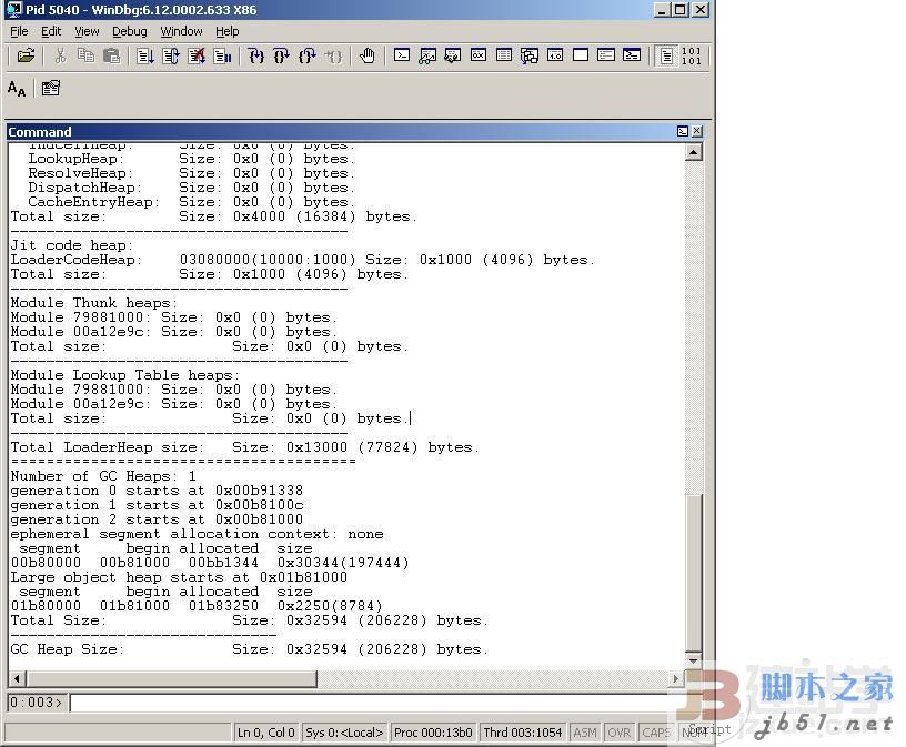 使用WinDBG+SOS附加到一个.net程序上;然后查看堆中的情况;