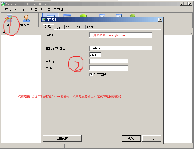 为方便大家使用navicat特为大家准备了这个教程,建议大家一定不要用root账号,root对所有数据库都有操作权限,如果让黑客知道了root密码,那么很多数据库都会被黑客读取到,甚至威胁到系统安全,mysql的安全设置方法,可以到脚本之家查找。