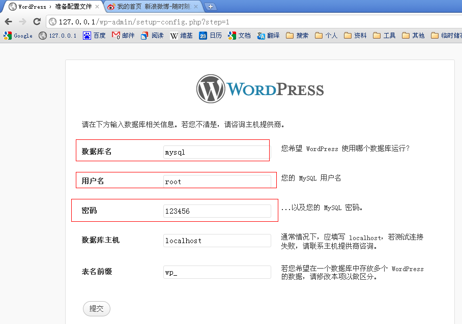 10.输入相关信息(之前安装phpnow的时候用到的密码需要填入此处),完成后提交;