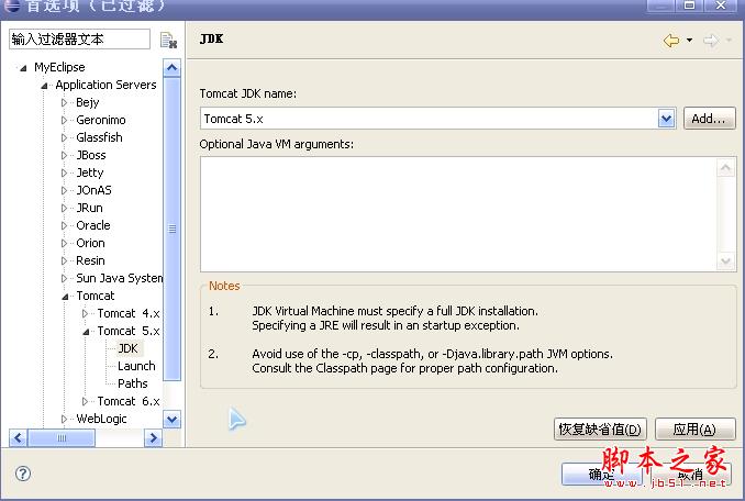 三、千万别忘了Tomcat 选项下面的JDK,我就是因为没注意到它才一直不成功,单击JDK,弹出如下对话框,