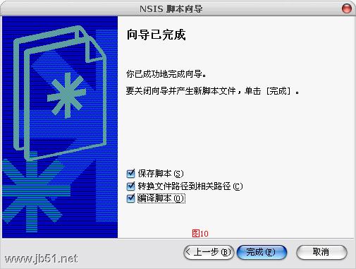 9.至此完成向导,如图10,,钩选“保存脚本”、“转换文件路径到相关路径”及“编译脚本”