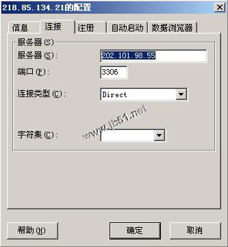 四、输入MYSQL服务器的IP地址,例如:202.101.98.55,如下图