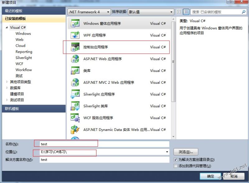 如上图,选择控制台应用程序,根据需要也可以选择窗体应用程序或webz应用程序,然后命名,选择保存路径即可