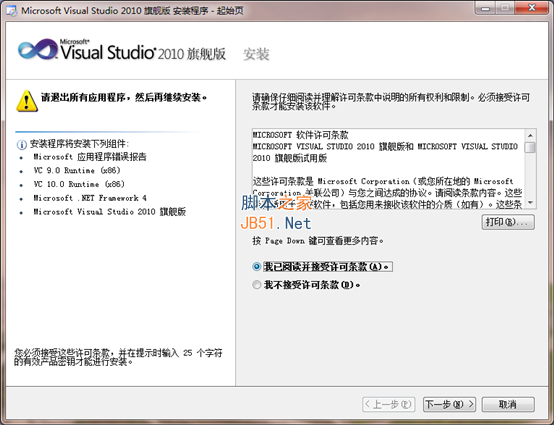 如果你下载的是 VS2010 英文版,共4个分卷,必须全部下载完成,然后执行 VS2010UltimTrial_4PartsTotal.part1.exe 进行安装。