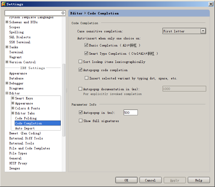 File -> Settings -> IDE Settings -> Editor -> Code Completion