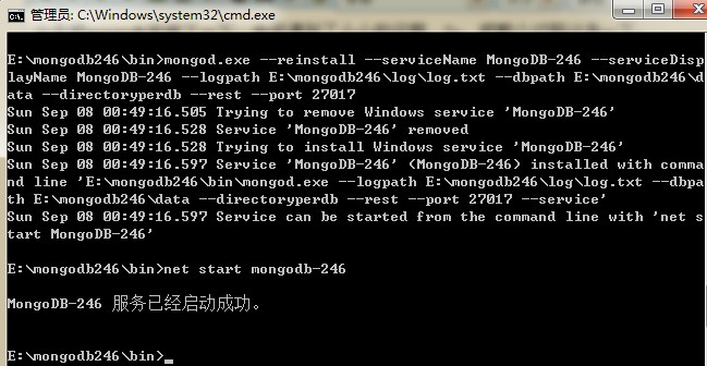 解压到当你要安装的目录,然后我把目录名给改短了一下,叫mongodb246,放在了e盘下。