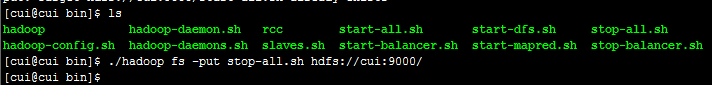 hdfs://cui:9000/ 表示存放在HDFS中的根目录中。
