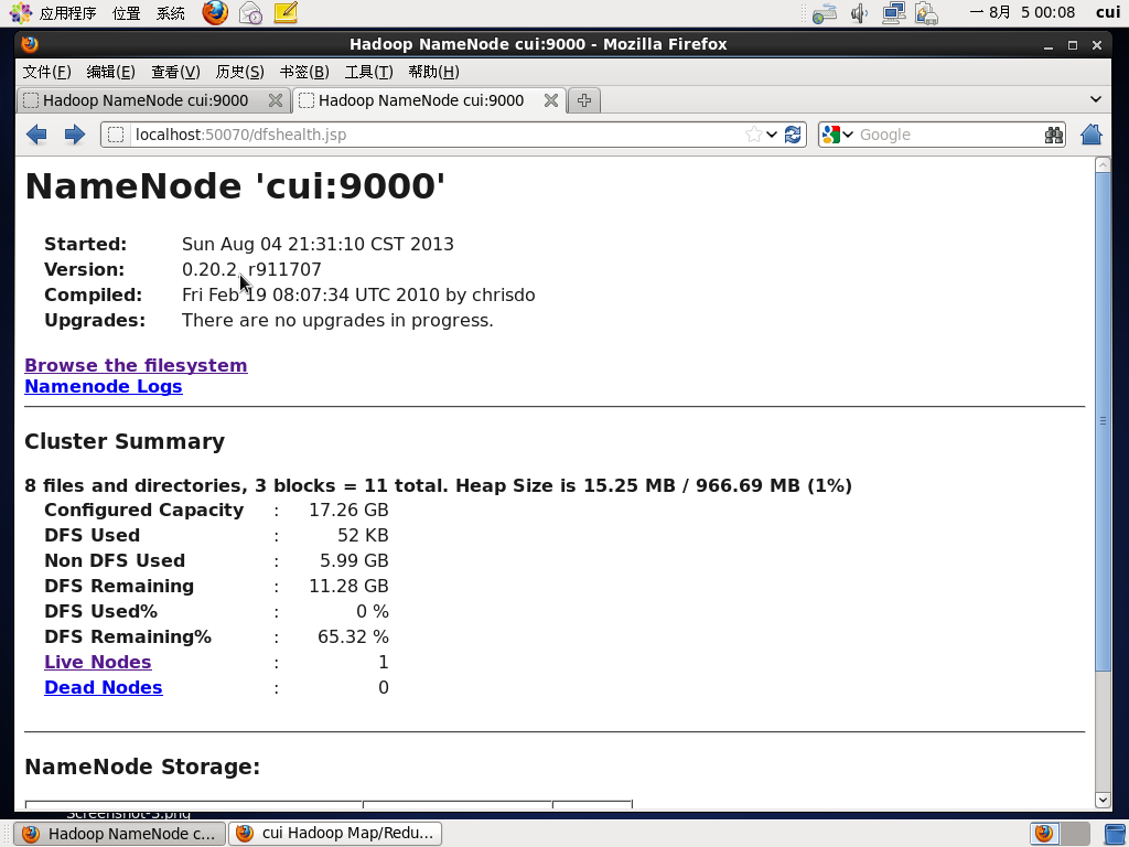 环境:CentOs6.4 Hadoop版本:hadoop-0.20.2