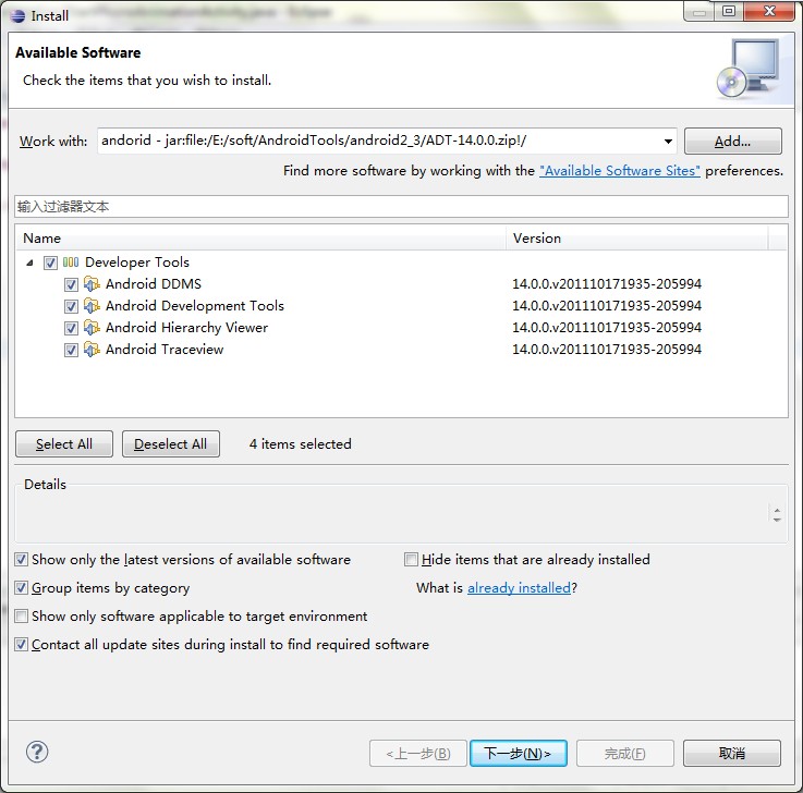在android.link中写上path=E:/android/adt,目录一直到解压插件中的features和plugins目录中的上一级即可