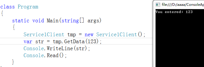 5.然后找到刚刚的wcf测试客户端,把服务器地址放上去。然后调用服务类库上的类,测试
