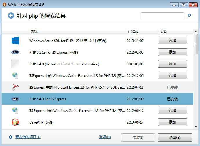 在开始程序里打开Microsoft Web Platform Installer,继续在这个web平台上查找并下载php软件。