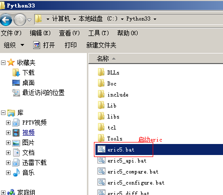 安装完成后进入C:\Python33目录,会看到如下结构,双击eric5.bat,启动eric5,首次启动需要配置一些配置信息、配置信息佩紫怀黄完成确定后,会选择工程文件放置位置。