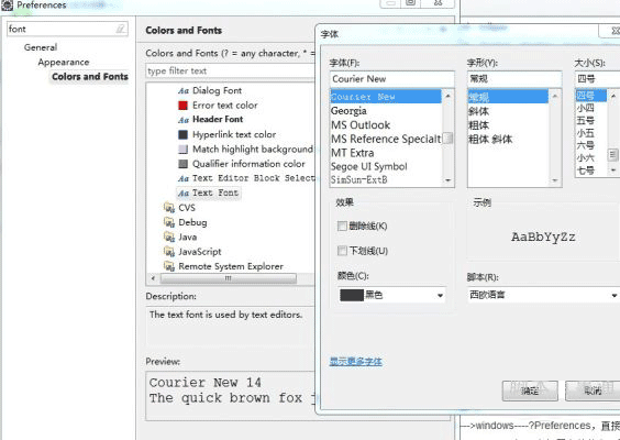 刚好看到网上有人用了新的方法。很简单,就来给和我这样的新手分享下。打开eclipse---->windows----?Preferences,直接在上面输入font,General-->Appearance-->Colors And Fonts进去,Basic-->Text Font(双击),在打开字体的窗口里显示更多字体,,然后找到你想要加进去的字体,点击显示,在你字体那个对话框就有了。