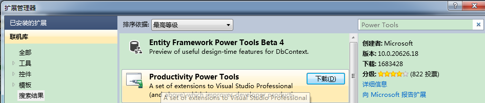 同样这款工具可以通过VS的扩展管理器直接获得:
