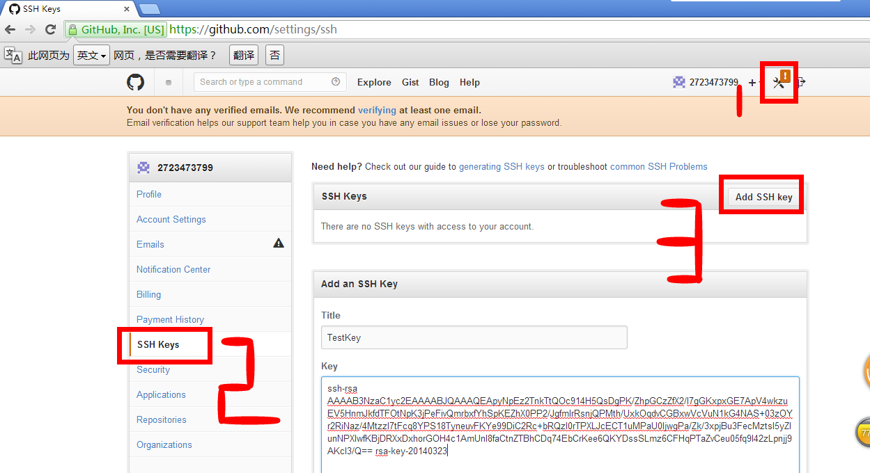 第三步:Github绑定public key