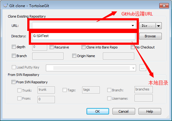 URL输入如下图所示的地址,本地目录根据所需进行选择或者新建文件夹即可。