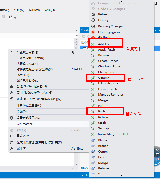 Add Files添加文件 Commit提交文件(到本地) Push推送(到服务器)