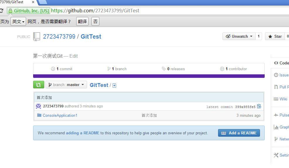 终于成功的完成了在GitHub上的源代码管理,心中不由暗自庆幸,哈哈。接下来再去具体学习下一些关于Git的细节操作了。