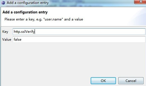 打开eclipse中的windows-->Preferences-->Team-->Git-->Configuration-->User Settings.然后点Add Entry新建一个键值对,输入http.sslVerify=false。如图所示: