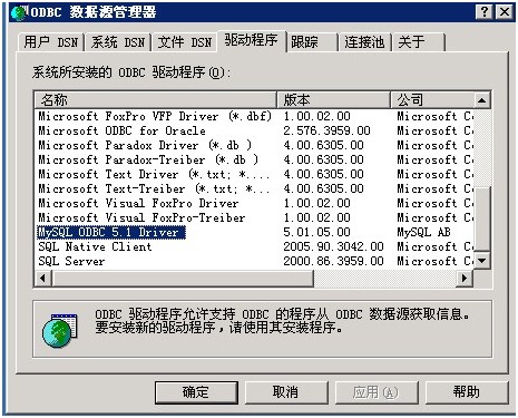 2、如果安装成功,在ODBC数据源驱动里面有个选项,如下图: