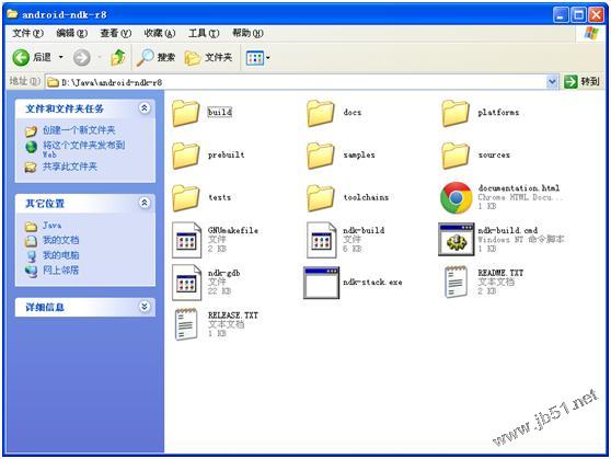 下载后解压缩到你的工作目录,例如:D:\Java\android-ndk-r8,结果如下图: