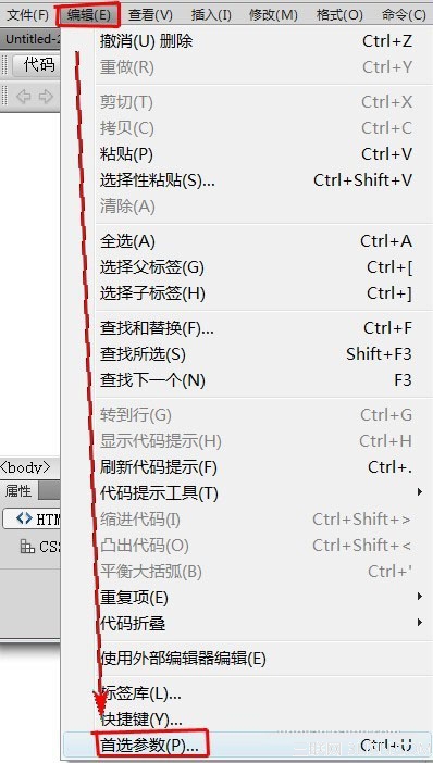 在菜单栏里单击“编辑”,在弹出的下拉菜单里选择“首选参数”。
